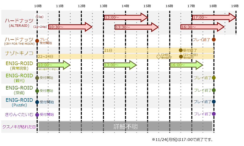 | 開催日時 | 11/22(土)~24(月祝)10:00以降30分間隔で開場 |